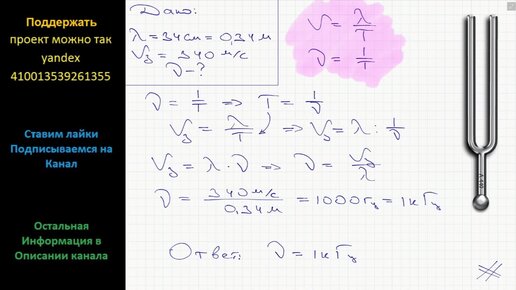 Физика Какой частоте колебаний камертона соответствует в воздухе звуковая волна длиной 34 см