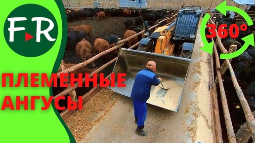 Абердин-ангусский скот. Зимнее стойловое содержание. Семейная ферма. Видео в формате 360°, 5K