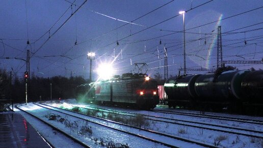 |ИСКРЯЩИЕ ТОКОПРИЁМНИКИ| ! Электровоз ВЛ10У-568 с грузовым, ст. Ожерелье. В ЛЕДЯНОЙ ДОЖДЬ, 22.11.22