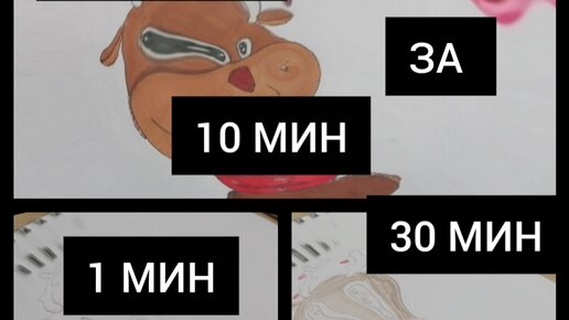 Рисую картинку за 1 МИН, 10 МИНУТ И 30 МИНУТ. Что получилось лучше???