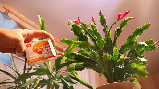 Если суккулент выбрасывает мало бутонов, расскажу как решить эту проблему. Декабрист и янтарная кислота.