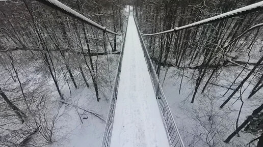 Зимняя атмосфера - прогулка по подвесному мосту