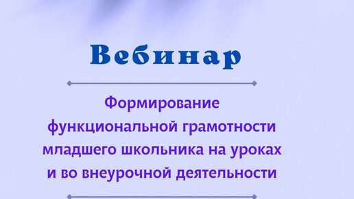 Формирование функциональной грамотности младшего школьника на уроках и во внеурочной деятельности.