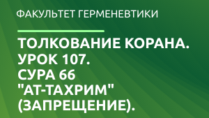 Толкование Корана. Урок 107. Сура 66 "ат-Тахрим" (Запрещение).