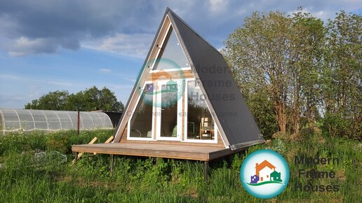 Обзор треугольного дома А ФРЕЙМ для глэмпинга или дачи от компании Геометрия комфорта г. Пермь