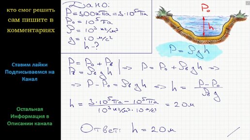 Физика На какой глубине давление в озере равно 300 кПа? Учтите существование атмосферного давления