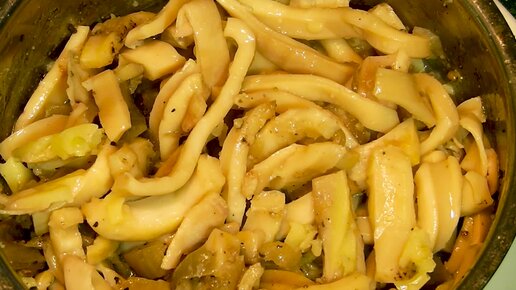 Тушеный кальмар с луком и сливочным маслом.