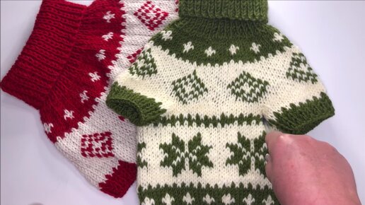 Новогодний свитер для маленькой собачки. Описание для трех размеров. Жаккард по кругу. Советы по вязанию для собак