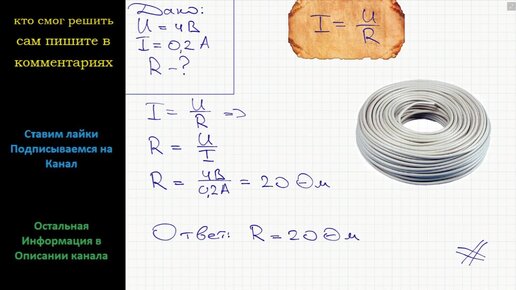 Физика При напряжении на концах проводника 4 В сила тока в проводнике 0,2 А. Чему равно сопротивление проводника?