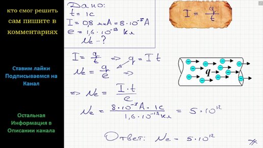 Физика Сколько электронов проходит за 1 с через поперечное сечение проводника, если сила тока 0,8 мкА?