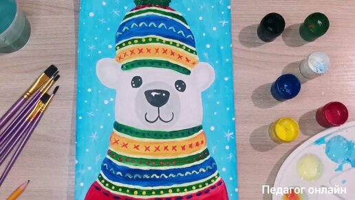 Как нарисовать белого мишку. Зимний рисунок поэтапно. Рисование для детей
