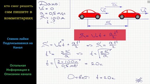 Физика За какое время автомобиль, двигаясь из состояния покоя с ускорением 0,5 м/с2, пройдет путь 100 м?