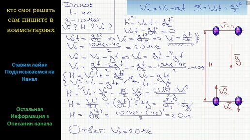Физика Подброшенный вверх камень упал на землю через 4 с. Какова была его начальная скорость? Какой высоты он достиг? С какой скоростью