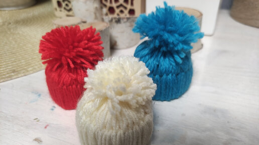 Шапочки из пряжи и втулки от туалетной бумаги)