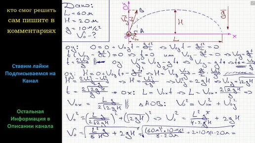Физика Футбольный мяч пролетел после удара расстояние L = 60 м. Какую начальную скорость сообщили мячу, если высота верхней точки его