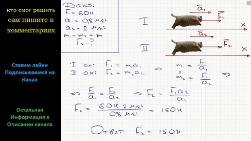 Физика Сила 60 Н сообщает телу ускорение 0,8 м/с2. Какая сила сообщит этому телу ускорение 2 м/с2?