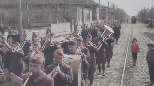Северная Область. 1918-1919 годы. Серия 24. Траурная процессия 339 пехотного полка армии США в Архангельске.
