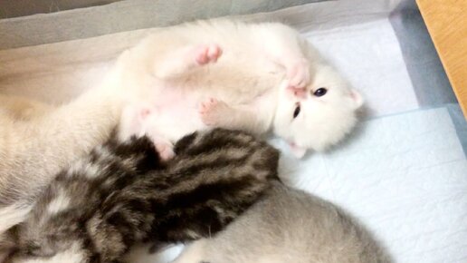 Котятам кошки Кайли 2 недели. Не спи, а то замёрзнешь! Мама обнимает своего котёночка сыночка.