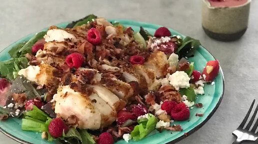 Салат с курицей. Отбросьте кулинарные предубеждения и приготовьте салат с куриным филе, овощами и малиной.