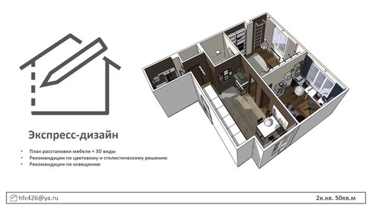 Экспресс-дизайн интерьера. Квартира 50кв.м. Стоимость проекта 17500.-