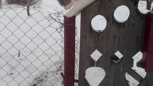 Кошка на калитке, дом, колодец и сад.
