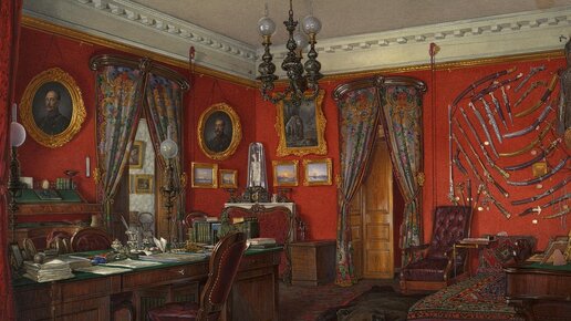Кабинет в стиле эклектика. Предметы интерьера, одежда, ковры императорской семьи.