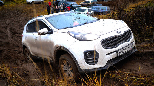 Парень мучает свой Kia Sportage на бездорожье. Липучка не резина