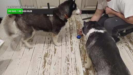 голодные и немного воспитанные хаски учим команду - нажми колокольчик