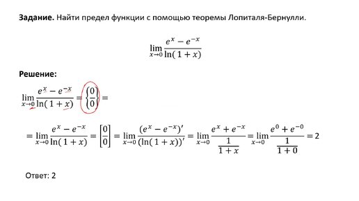 Вычисление предела с помощью правила Лопиталя. Раскрытие неопределенности "ноль на ноль" (РЗ 3.8б)