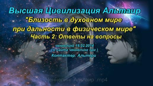 Ченнелинг Высшая Цивилизация Альтаир "Близость в духовном мире при дальности в физическом мире". Часть 2. 18.02.2014