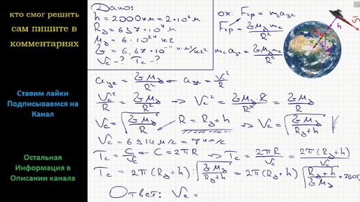 Физика Спутник движется по круговой орбите на высоте h = 2000 км от поверхности Земли. Определите его скорость и период обращения
