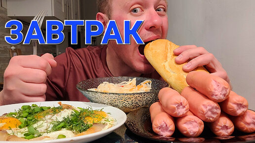 МУКБАНГ. ОБЖОР. СОСИСКИ, ЯИЧНИЦА НА САЛЕ, КВАШЕНАЯ КАПУСТА.