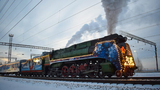 Далее: Электровоз ЭП20-022 и паровоз П36-0031 с поездом Деда Мороза.