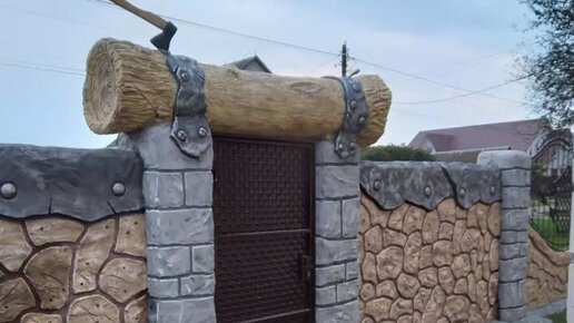 Забор, декоративная штукатурка .фонтан, декоративные скалы. мастер Василий