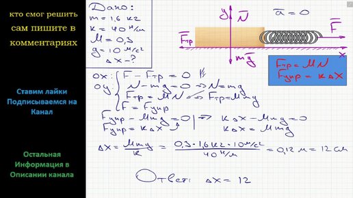 Физика Брусок массой 1,6 кг равномерно тянут по столу с помощью пружины жесткостью 40 Н/м Каково удлинение пружины если коэффициент трения