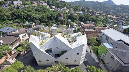 Фантастический "Дом-цветок" с садами, двориками и террасами в Южной Корее