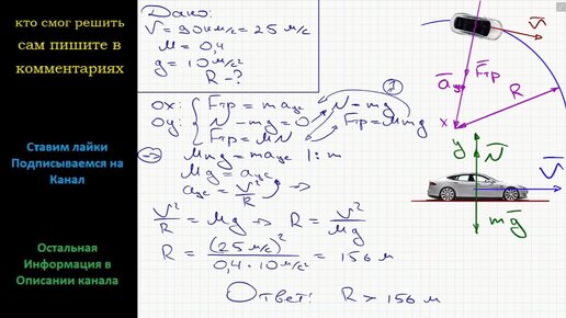 Физика На шоссе разрешено движение со скоростью, не превышающей 90 км/ч. Какой радиус могут иметь повороты? Считайте что коэффициент трения