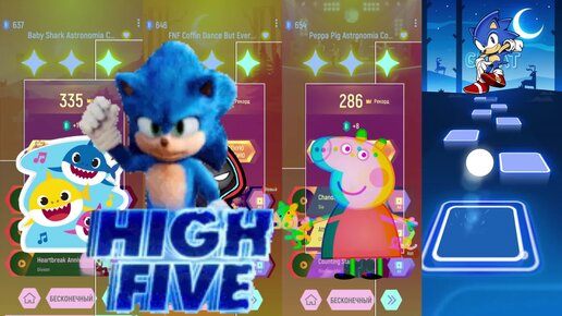Свинка Пеппа, Акуленок туруруру, FNF, Sonic! Tiles Hop; EDM Rush!