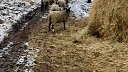Милые овечки, живущие у древней церкви и около голубятни
