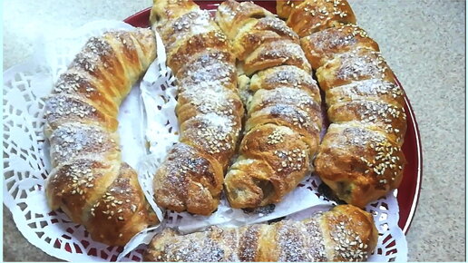 Простая но очень эффектная выпечка. Можно угадать в них и мотивы французских круассанов.