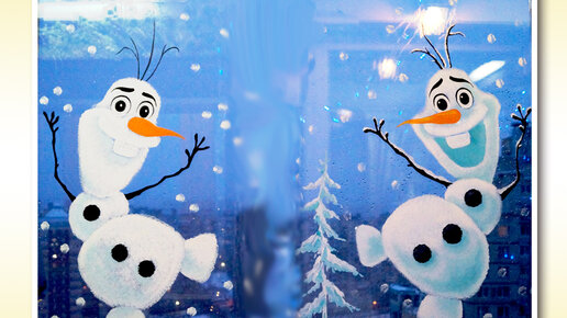 Как нарисовать СНЕГОВИКА Олафа из мультика "Холодное сердце" на ОКНЕ к НОВОМУ ГОДУ. Украшаем окно.