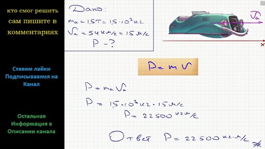Физика Чему равен импульс автомобиля массой 1,5 т, движущегося со скоростью 54 км/ч?