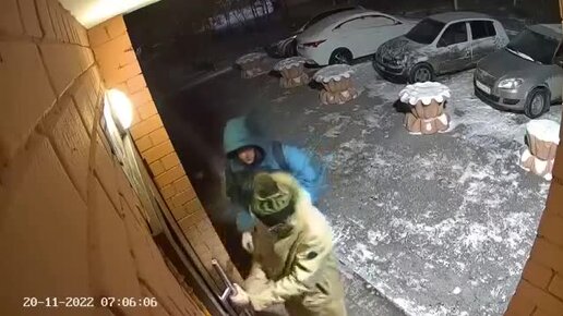 Тянем-потянем и оторвали ручку... Двое мужчин очень сильно хотели войти в подъезд, но дверь не поддалась