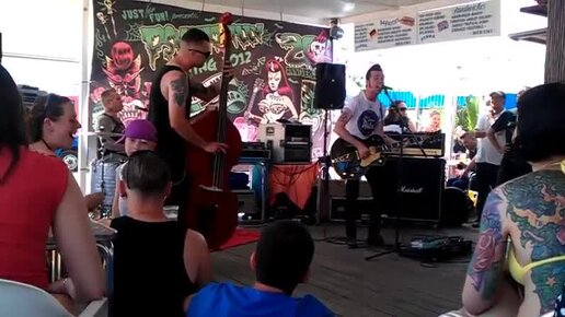 Концерт рок-н-рольщиков в пляжном баре в городке Калелья в Испании