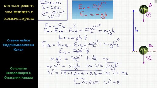 Физика Тело падает на землю с высоты 25 м. Определите его скорость при ударе о землю. *Сопротивление воздуха не учитывайте.