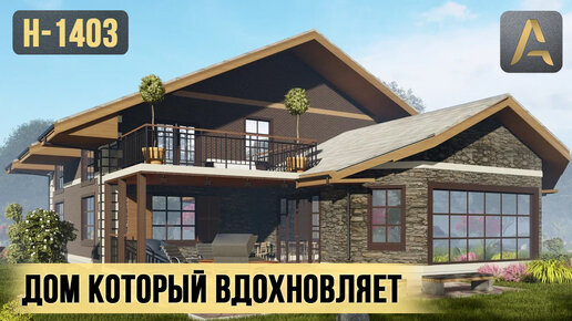 Вдохновляющий дом с уютной планировкой. Проект дома в стиле Шале с террасой, балконом и зимним садом