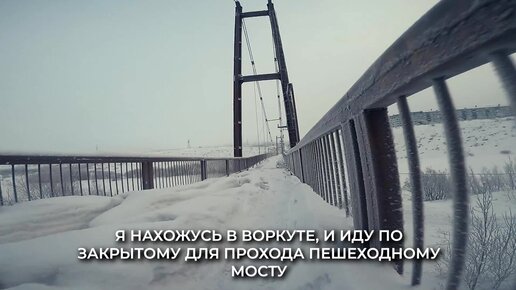 Снег весело хрустит на полуразрушенном мосту к расселённому району Воркуты