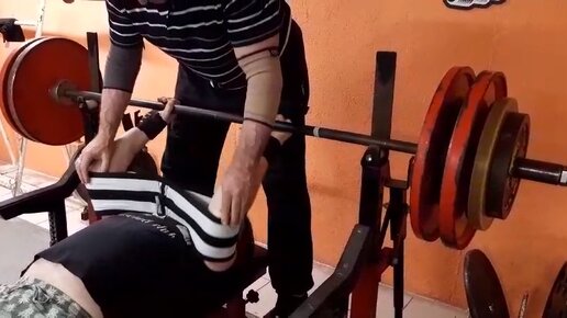 Далее: Жим лежа на тренировке за месяц до соревнований, 210кг #жимлежа #тренировка #софт