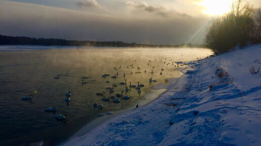На Алтай вернулись зимовать лебеди. "- 22С"