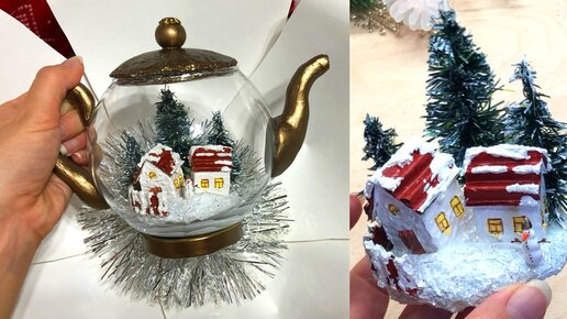 Делаю новогодний чайник с зимним декором. Новогодняя переделка вазы / New Year crafts from a vase